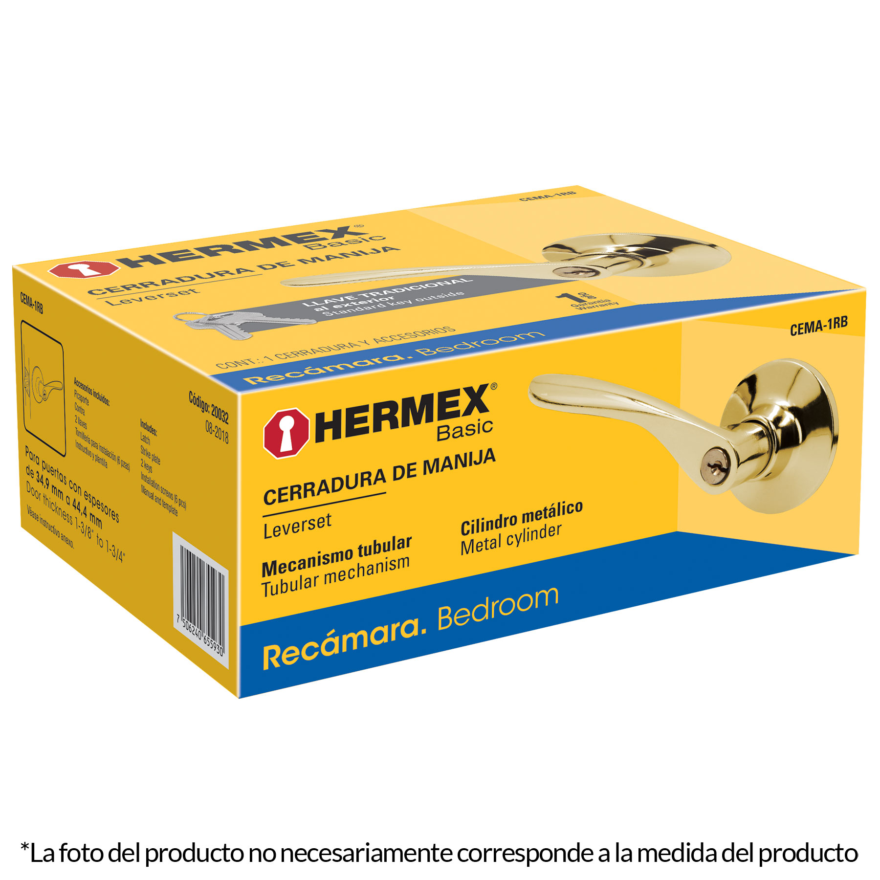 CERRADURA BASIC MANIJA, CILINDRO METÁLICO, BAÑO, CROMO HERMEX COD: 20037
