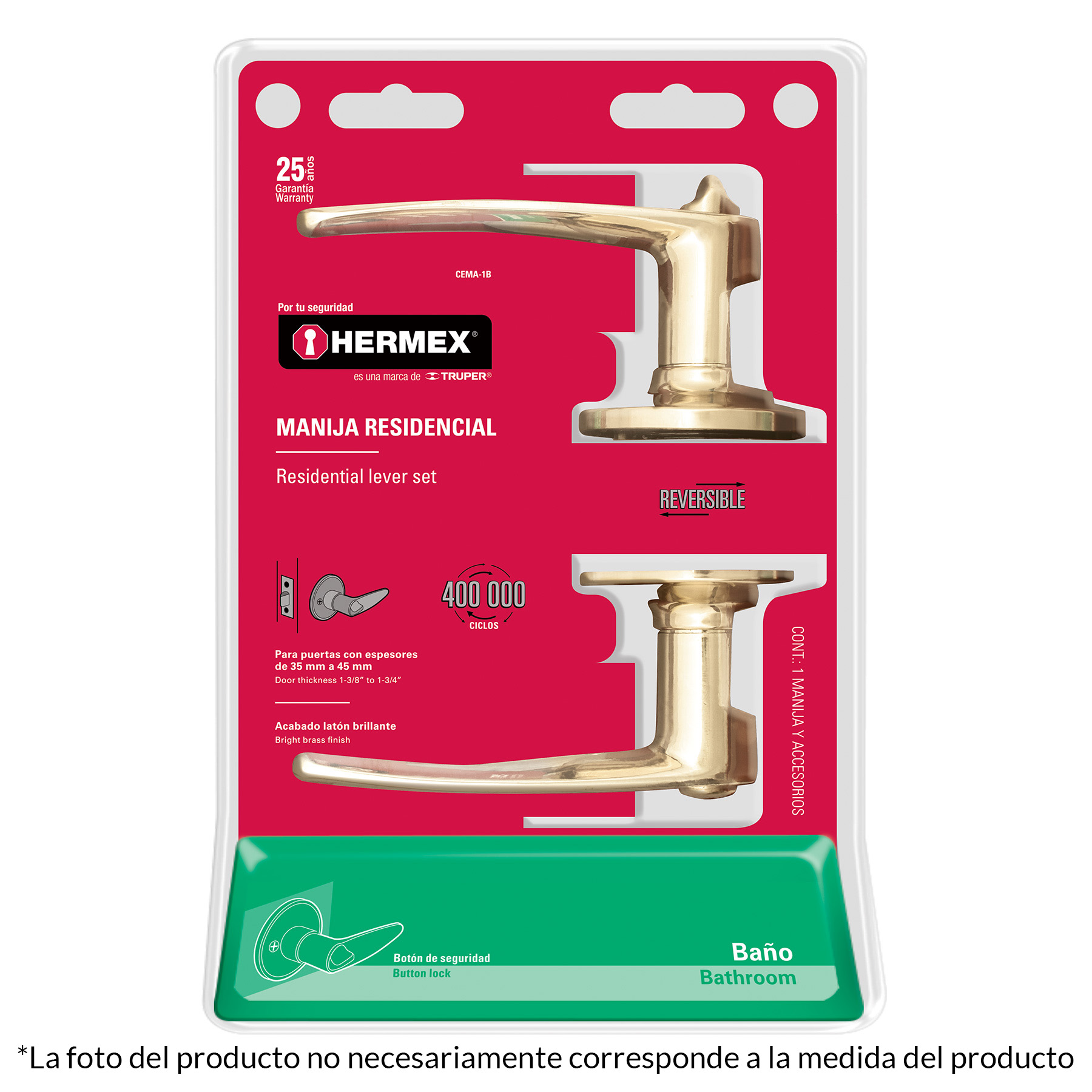CERRADURA MANIJA, CILINDRO LATÓN, CROMO MATE, BAÑO HERMEX COD: 43653