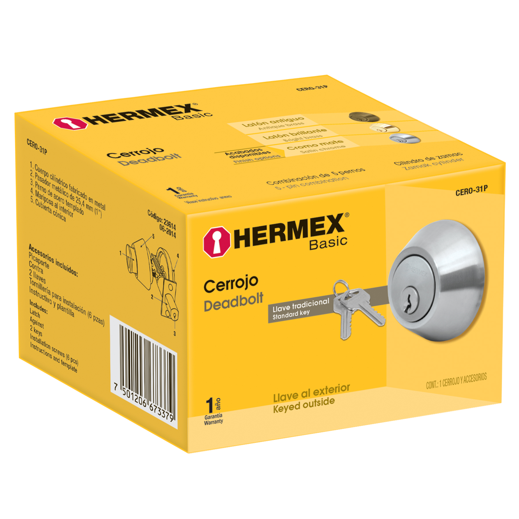 CERROJO, CROMO MATE, CILINDRO-MARIPOSA, HERMEX BASIC COD: 23614
